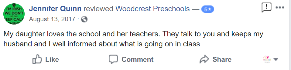 Woodcrest Preschool prides itself on staying connected by keeping parents up-to-date on the preschool experience with pictures and notes sent home daily using our mobile app.