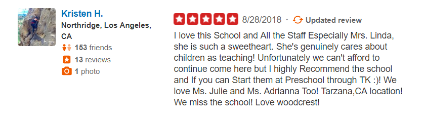 Thank you for your interest in Woodcrest Preschool in Tarzana located at 6043 Tampa Ave. Our Tarzana center is set on a park like campus filled with smiling students, dedicated teachers and supportive parents. The school is conveniently located in Tarzana off the 101 FWY . If you are looking for a loving and nurturing preschool program with strong academics, fun themes, lots of play, and 21 century skill building, Woodcrest Preschool is the right place for your family.